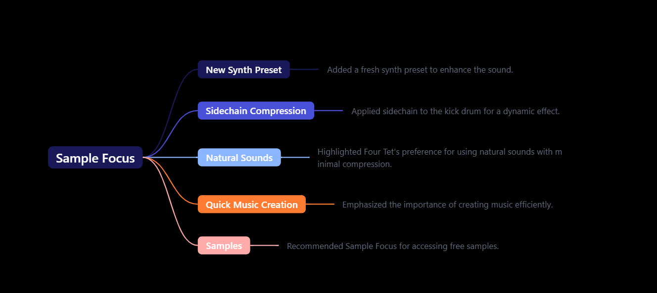 For textures, Four Tet often incorporates recordings from his phone. If you lack personal recordings, you can find samples online, like those on Sample Focus. Four Tet also prepares drum loops in advance.