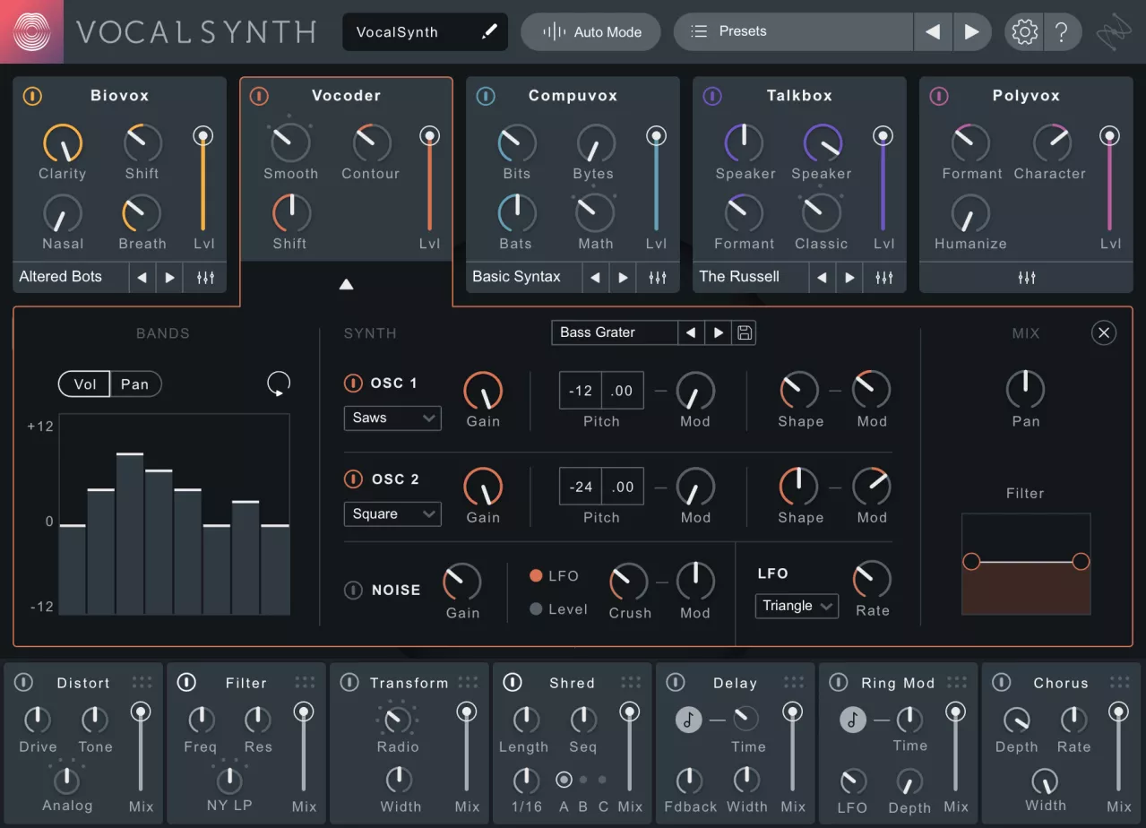 iZotope VocalSynth 2 VocalSynth 2 is a powerful vocal processing plugin that includes a vocoder module. It offers advanced features like formant shifting and unvoiced detection, making it a top choice for producers.