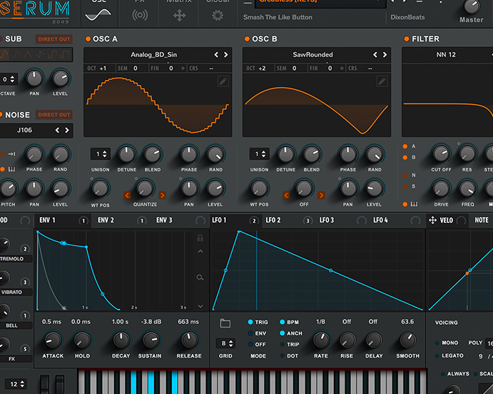 - Start with a saw wave for fullness and layer a sine wave an octave lower for sub-bass.