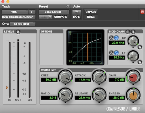 - Threshold/Attack: Set threshold to capture peaks, fast attack (5-10 ms).
