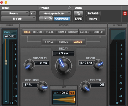 for reverb. Adjust the effect parameters in the plugin window that opens.