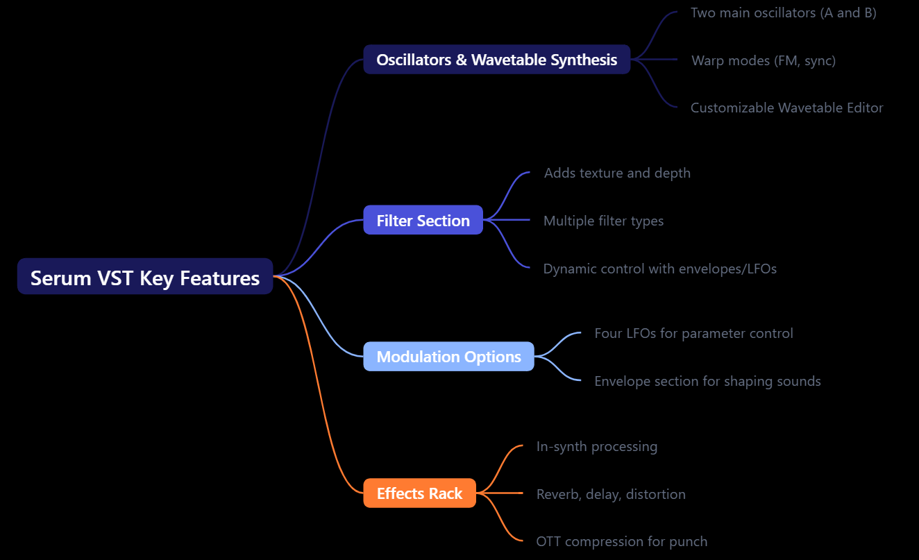 Xfer Serum remains a top choice for producers thanks to its high-quality sound, versatile features, and ease of use. It doesn't matter if you’re making bass-heavy EDM, bright Hyperpop leads, or ambient textures – Serum VST gives you the tools to bring your ideas to life. You can make use of Serum’s core features – like its oscillators, modulation options, and FX rack –to improve your skills in sound design.